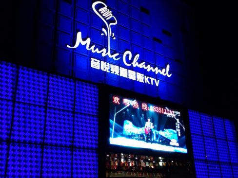 《大連普蘭店音悅頻道KTV》樓體亮化工程-大型樓頂發(fā)光字工程完美竣工